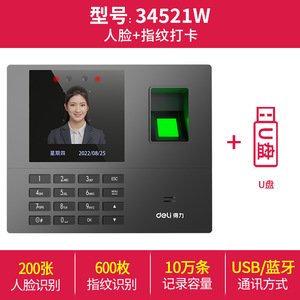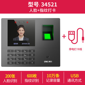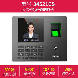 デリ顔認識勤怠管理機、従業員勤務顔認証指紋チェックイン勤怠管理機 34521