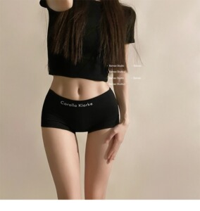 スポーツスタイルのコントラストカラーのボクサーパンツ、女性用のシームレスな純綿の下着、抗菌グラフェンクロッチカバーヒップミッドウエスト女の子用ボクサーブリーフ