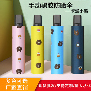 雨中花傘 女性用 高級 防雨 手動折りたたみ ミニ ポータブル フルーツベア ブラックラップ 日焼け止め