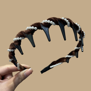 パールテクスチャクラッシュヘアヘッドバンド女性のハイエンドヘッド小さなヘアピン高頭蓋骨歯滑り止めヘアバンド