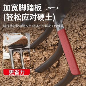 農業用耕運鋼フォーク、4本歯開墾、土掘り、土ほぐし、耕運フォーク、全鋼木製ポール、鉄フォークヘッド、農具5