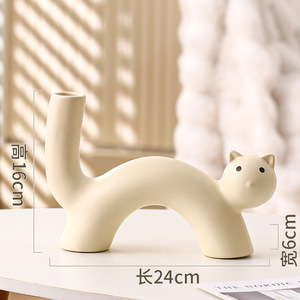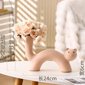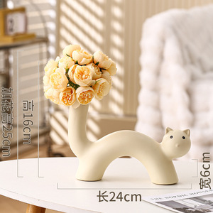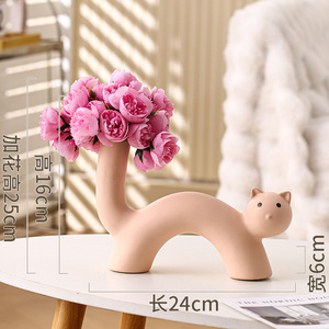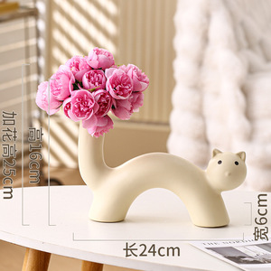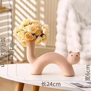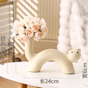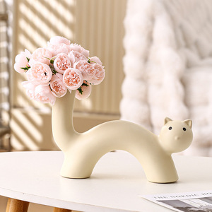 インクリームスタイルアートセラミック花瓶かわいい猫花瓶フラワーアレンジメント模擬花リビングルームデスクトップ装飾品