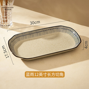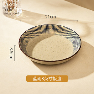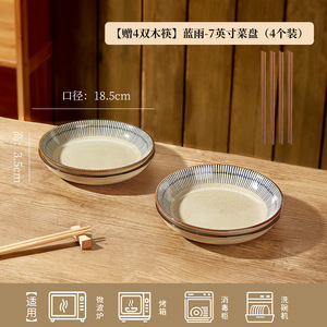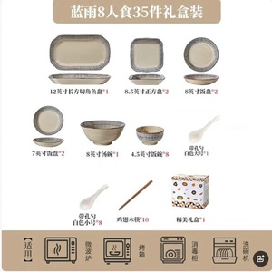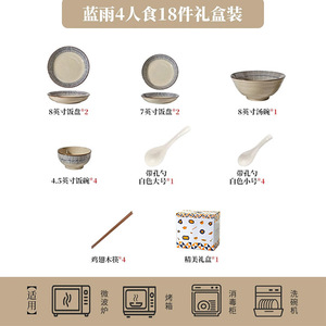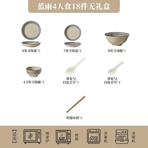 青い雨の日本式の碗の皿のセットの陶磁器の碗の皿の箸は食器のセットの碗の家庭の2025新型のスープの碗の皿に移ります。
