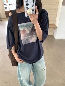 黄 _ 韓国版夏の新型レトロな古い風景のプリントをしています。