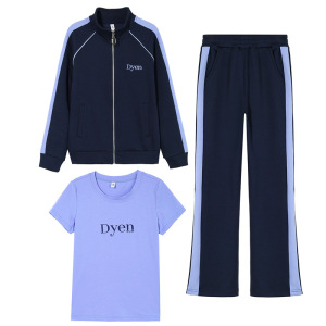 2025 春の新ファッションカジュアルスポーツスーツ女性の春と秋の中年ママのストレートパンツ高綿 3 点セット