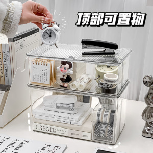 蓋付きアクリル収納ボックスデスクトップ透明収納ラックデスク化粧品ジュエリー便利なメモプラスチック収納バスケット
