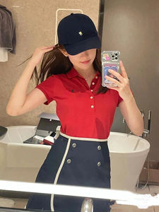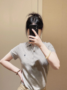 RL ラフポニーロゴピュアコットンアメリカンTシャツレトロ半袖刺繍ポロシャツレディース5ボタンレディーススリムラペル
