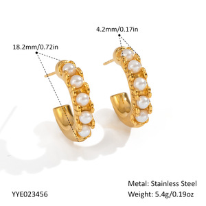 フレンチライト高級ステンレス鋼パールC型イヤリング女性用18Kゴールドメッキハイエンド気質イヤリング卸売