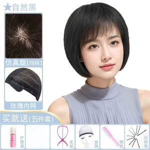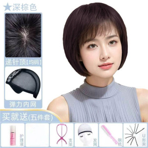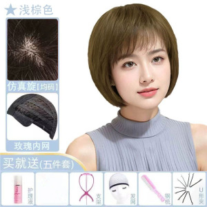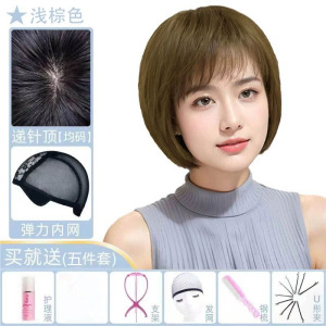 かつらの女性のショートヘアの中高年のお母さんの金は本当に髪を混ぜます。