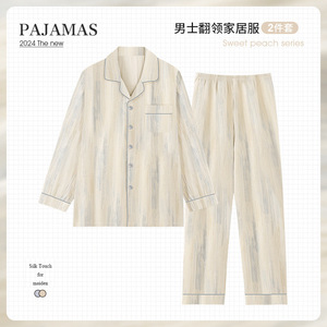 男性用二重ガーゼ綿ガーゼパジャマ、春と秋の純綿とリネンの長袖ズボン、ベビーガーゼ綿シルク、綿の夏のホーム服