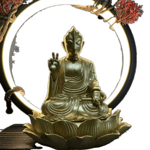 私の奥慈悲創意光の正義の友達の座り方は蓮の花の台座のお笑いの手を持って車に飾っています。