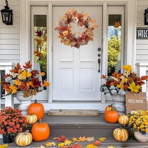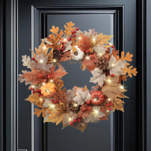 秋季仿真橡树叶南瓜红色松果装饰套装(花环)家居场景布置