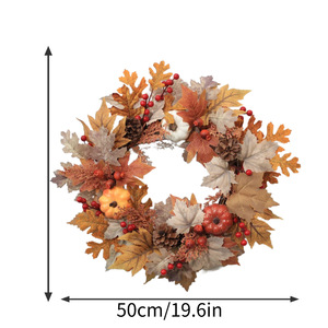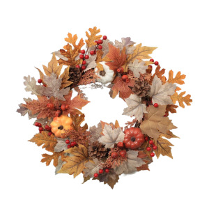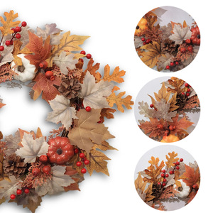 秋季仿真橡树叶南瓜红色松果装饰花环QH3211/50