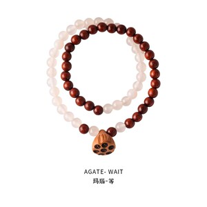 40#ブレスレット - 木製ビーズ シュガーハート アゲート - 絶妙なギフトボックス