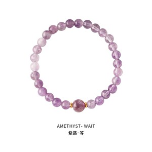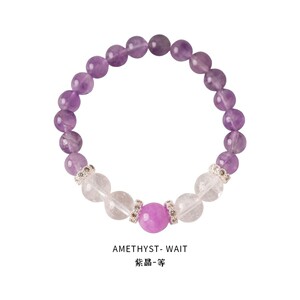 128#ブレスレット - アメジスト ホワイト クリスタル