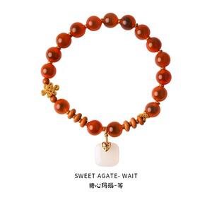 39#ブレスレット - 木製ビーズ シュガーハート アゲート - 絶妙なギフトボックス