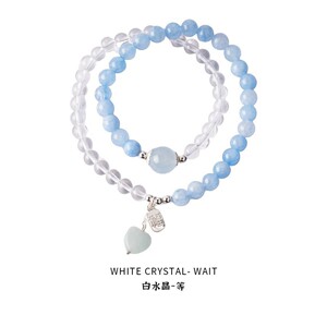 65#ブレスレット - ライトサファイアとホワイトメノウ - 絶妙なギフトボックス