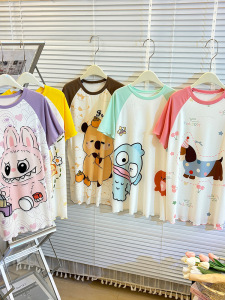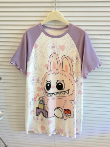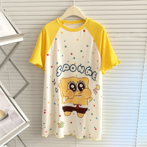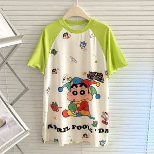 子供の夏の薄いタイプの長いパジャマの女の子の氷のシルクのカジュアルなレースの半袖のパジャマの赤ちゃんの漫画のパジャマのエアコンの服
