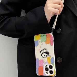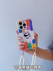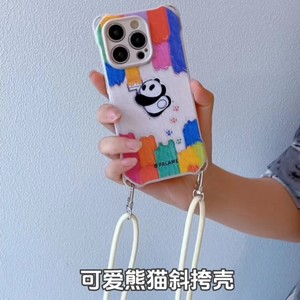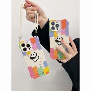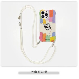 かわいいパンダリンゴ15promax携帯ケース14ストラップ付き斜め掛けバック14plus転倒防止12/11/XR