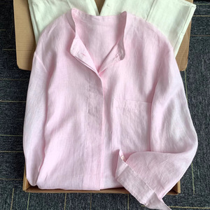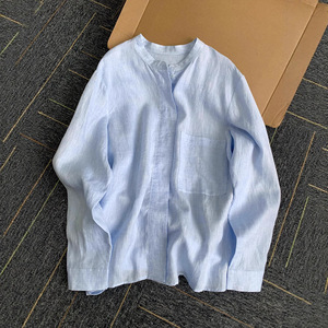 チャオ級おすすめ!呼吸感も抜群~オールドマネースタイルブルーリネンシャツレディース長袖高級日焼け止めシャツ