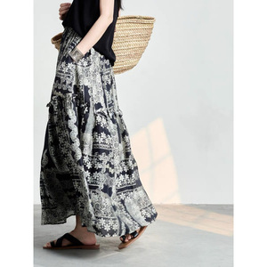オリジナル品質オリジナルデザイン文学ボヘミアンテンセルコットンプリントスカート