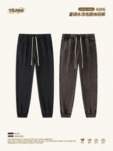 TILANI メンズファッションブランド 2025 新製品 420G ループコットンウォッシュドカラールーズカジュアルメンズレギンスパンツ