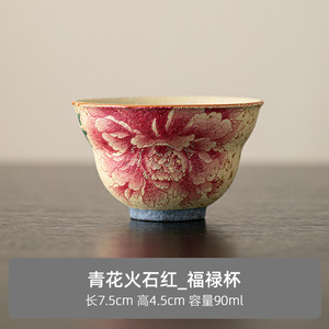 フロストレッドセラミックマスターカップレトロ牡丹小さなシングルティーカップ家庭用ハイエンドティーセットティーカップ