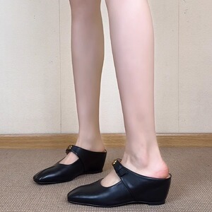 2025年新作 シンプルで万能なウェッジヒール バオトウ ミュール ハーフスリッパ カメリア ワンストラップ インナー高さアップ リゾートスリッパ