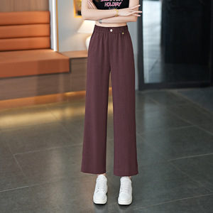 2025年新作夏レディースハイウエストワイドレッグパンツ、スリムで多用途、ファッショナブルでドレープ感のあるカジュアルなナローストレートパンツ