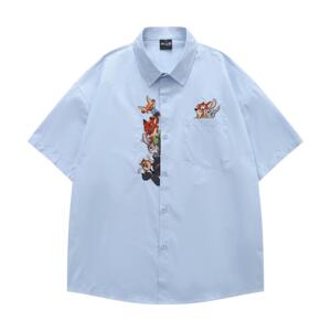 アメリカンレトロクレイジーアニマルフォックスニック刺繍シャツ男性と女性のための楽しい漫画のカップルデザイン半袖シャツ
