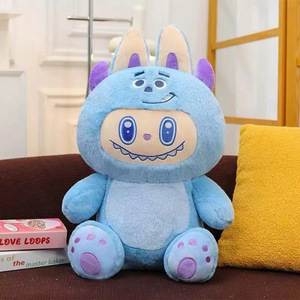 15インチのリナ熊公仔のぬいぐるみが女の子に寝て枕を抱いて十五インチの両替人形をプレゼントします。