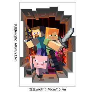 私の世界のマインクラフトrun away立体3d壁のステッカーは、悪役が鉱山の子供の部屋の装飾を掘ることにくっつきます。