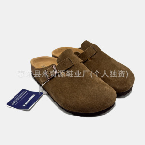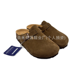 貿易直販 BK 第一層牛革ビルケンシュトックシューズ女性用 2025 新しいカップルスタイルスリッパコルク厚底包頭ハーフスリッパ