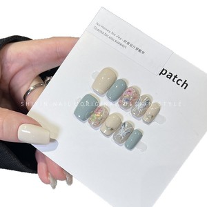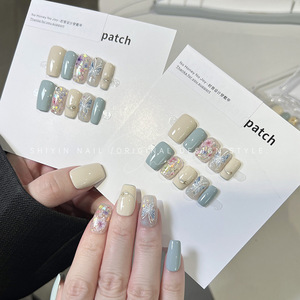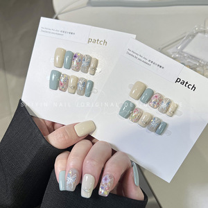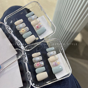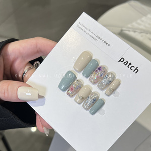 A329蝴蝶翼碎花时音纯手工设计穿戴甲春夏款清新可拆卸成品美甲贴