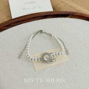 フレンチレトロパールブレスレット、軽い高級感、ニッチ、ユニーク、ハイエンド、ファッショナブル、パーソナライズされたプルアウト調節可能なブレスレット