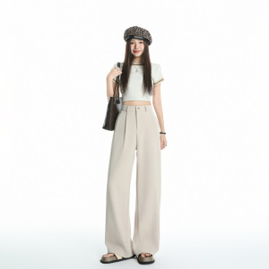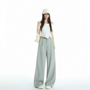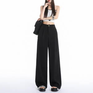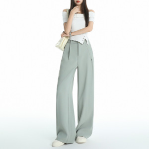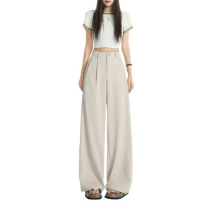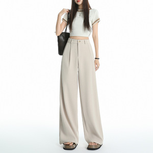 女性用スーツワイドレッグパンツ夏薄い2025新しいストレートレッグルーズハイウエストスリムカジュアルフロアレングスパンツ