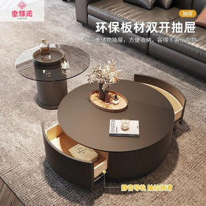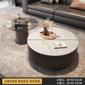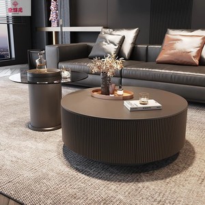 エンボス加工ラウンドロックプレートコーヒーテーブル組み合わせハイエンドブラックモダンリビングルームホーム小さなアパートシンプルなイタリアンスタイルライトラグジュアリー