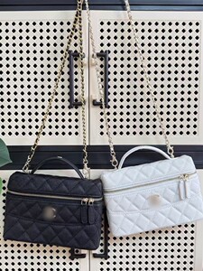 25 新しいスタイルの小さな香りのポータブル小さな正方形バッグシングルショルダークロスボディキャビアレザーボックスバッグ LP ランチボックスバッグ菱形バッグ