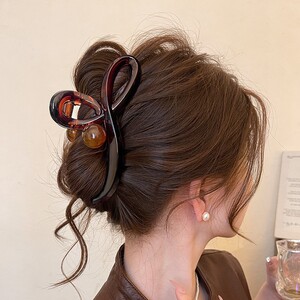 高級感カレー色のボールクリップ女2025新型高級感大ヘアクリップ後頭部サメクリップ頭飾り