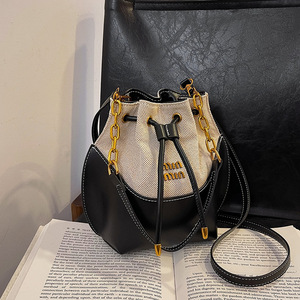 キャンバストートバッグ女性のための 2025 新しいファッションコントラストカラーステッチバケットバッグ通勤福袋シングルショルダークロスボディバッグ女性のための