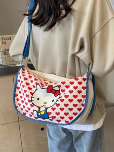キティクロスボディキャンバスバッグ日本の漫画大容量ショルダーバッグサドルバッグ学生クラス団子バッグ耐久性