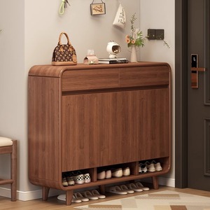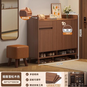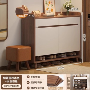 無垢材の色の靴キャビネットホームエントランス屋内玄関収納キャビネット一体型壁掛け2025新しいシンプルな靴ラック