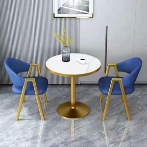 模造白い大理石のテーブルトップ + 金色の革張りの椅子
