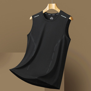 メンズ夏用薄手アイスシルクTシャツベスト アウトドアスポーツベスト ゆったり快適速乾Tシャツベスト
