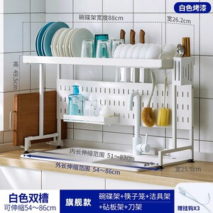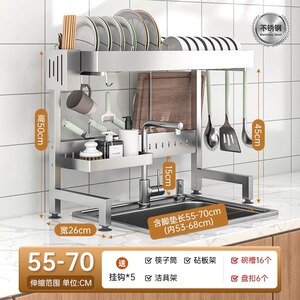伸縮式キッチンシンク収納ラックカウンタートップ食器と箸用多機能家庭用シンク上排水収納ラック