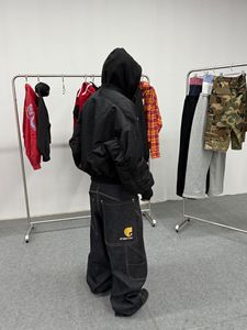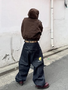 Jimo GrailzL オリジナル牛 OS シルエット ワークウェア マルチポケット 刺繍 ストレート デニム パンツ カジュアル ワイドレッグ パンツ メンズ