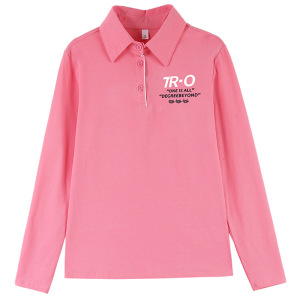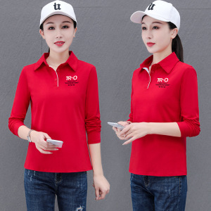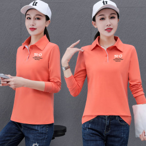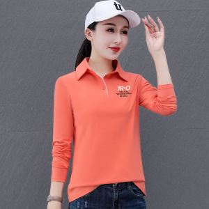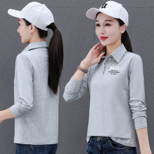 純綿ストレッチファッションカジュアル長袖ポロシャツ女性のための春と秋の薄いシンプルな通勤作業服ルーズ Tシャツ