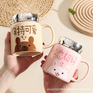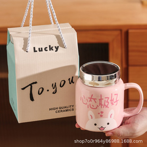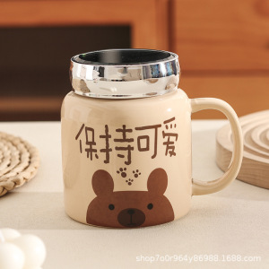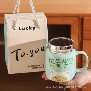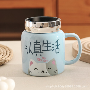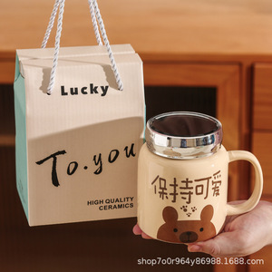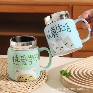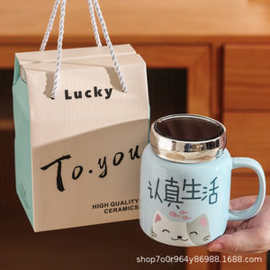 セラミック鏡面カップ蓋付き高颜値マグカップかわいいオフィスカップ学生カップルカッププレゼントカップ