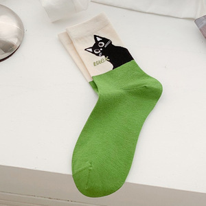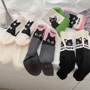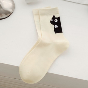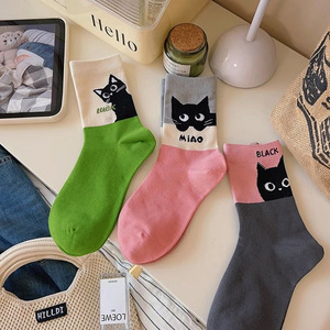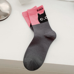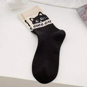 Zhuji 漫画猫学生靴下ステッチ無地多用途ロングソックス春と夏の通気性ミッドチューブソックス女性卸売
