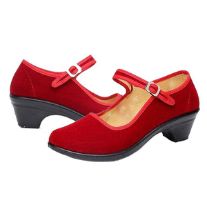 古い北京の布の靴の女性の赤い中と広場の柔らかい底のダンスの靴の女性はダンスの妻の平毛のお母さんの靴を引っ張ります。